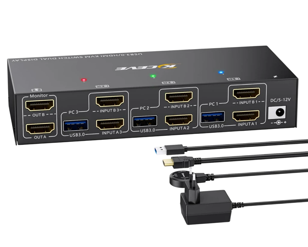 USB3.0 KVM Switch 3 PC 2 Monitore