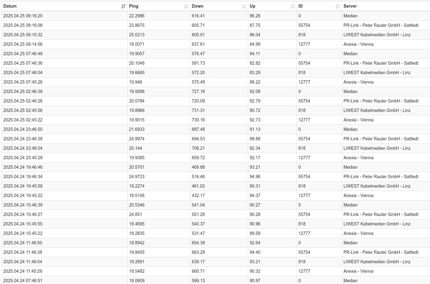 Obige und die Werte im Speedtest Bild wurden nur erreicht weil A1 zu diesem Zeitpunkt die Drosselung zu den meisten Speedtest’s abgeschaltet hat.