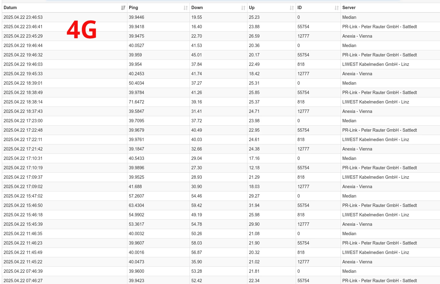Bei mir ist mein alter 4G Sendemast jetzt ein reiner 5G Sendemast und der verbliebene verfügbare 4G Sendemast in der gegengesetzten Richtung, also wird die Anzahl der 4G Sendemasten reduziert und das wirkt sich natürlich auf die Leistung aus.
