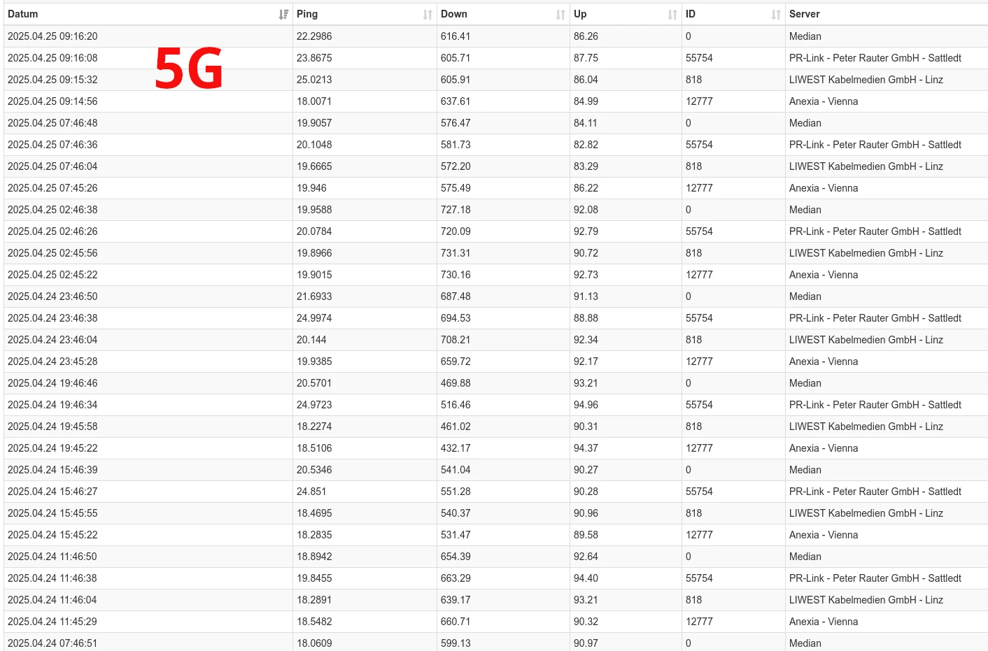 die 5G Werte im Speedtest Bild wurden nur erreicht weil A1 zu diesem Zeitpunkt die Drosselung zu den meisten Speedtest’s abgeschaltet hat.
