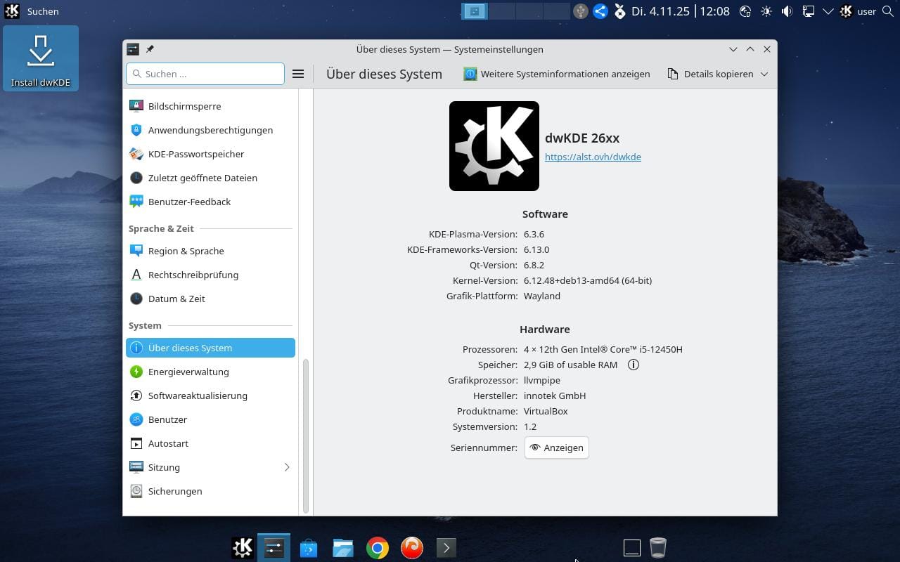 Nach dem booten kann man dwKDE mit dem Calamares Installer auf die Festplatte installieren: